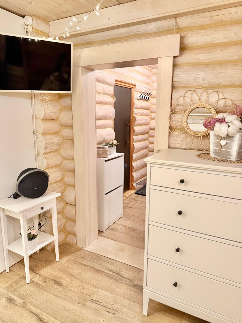 Tā ir neliela, boutique stila guļbaļķu mājiņa, kas apvieno lauku šarmu ar mājīgu eleganci — vieta, kur laiks palēninās un katra detaļa elpo mieru.