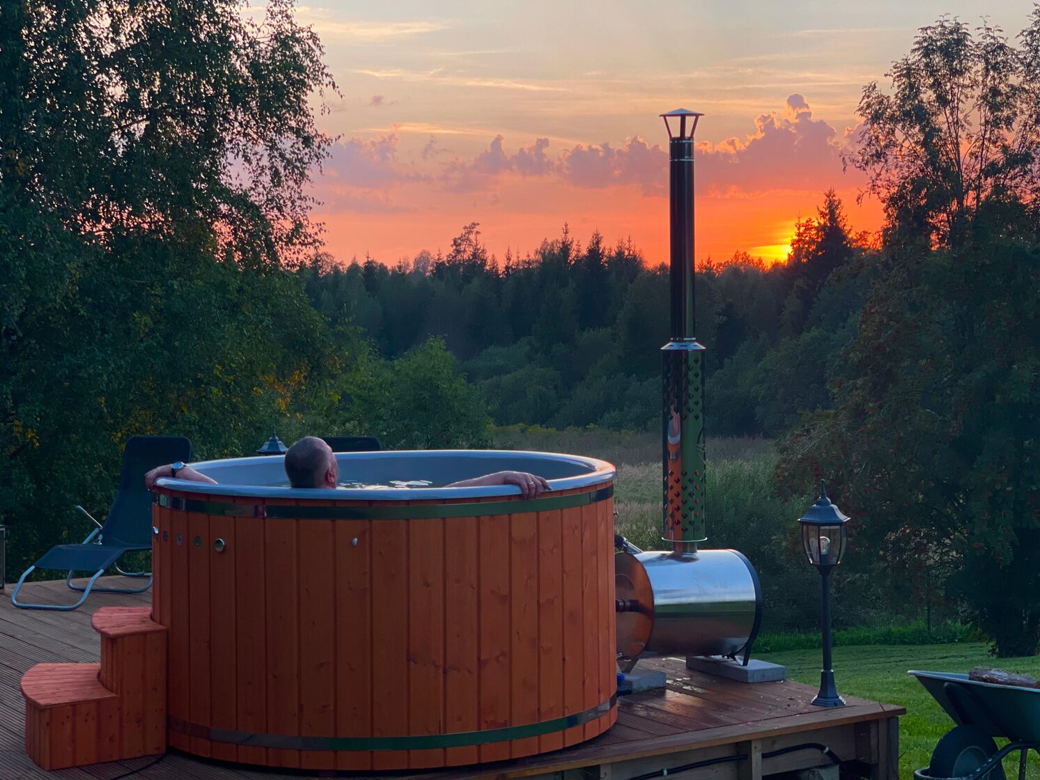 Zvaigznes, burbuļi un silts ūdens… Kubuls uz terases kļūs par jūsu vakara maģisko rituālu — ideāli mieram, sarunām un nesteidzīgai atpūtai dabas vidū✨ Kublam ir vakara apgaismojums dažādās krāsās. Izvēlies savējo un baudi!♥️