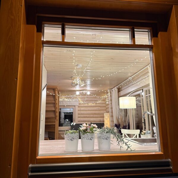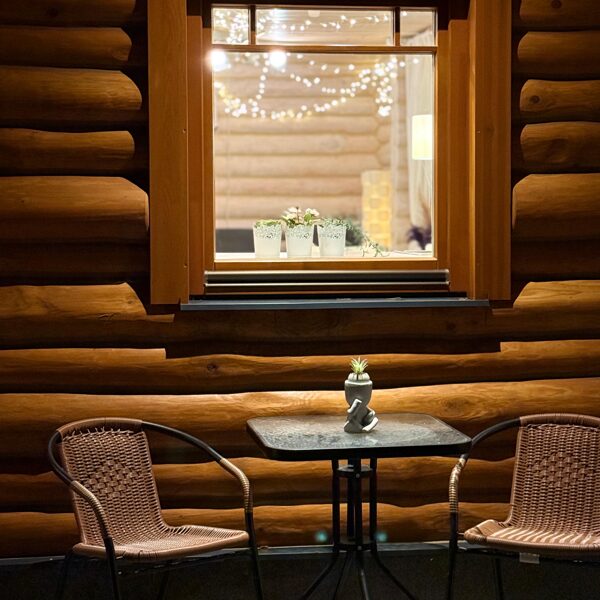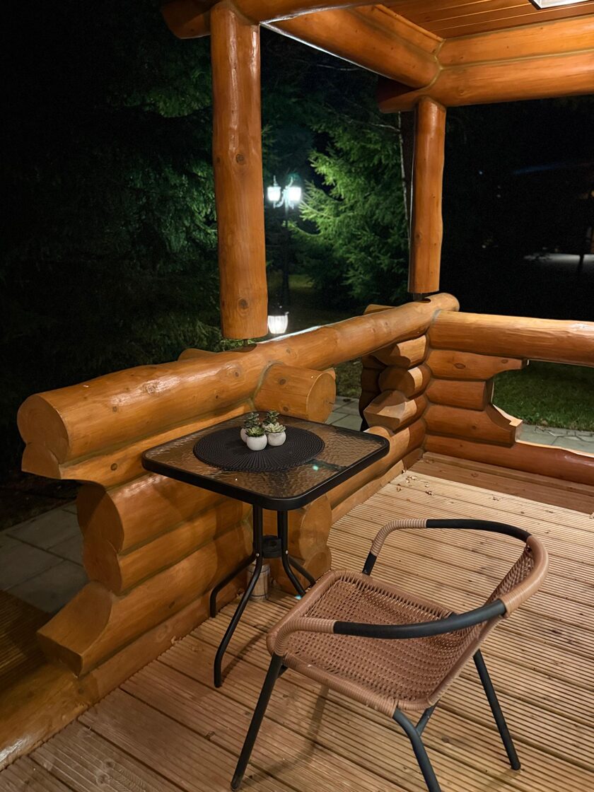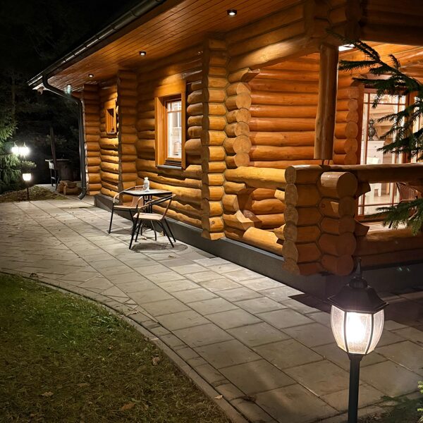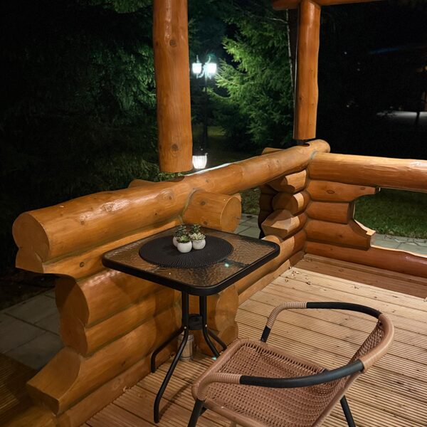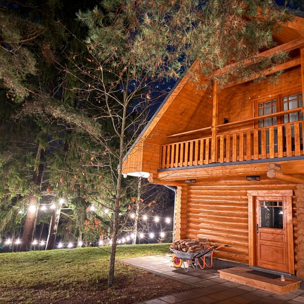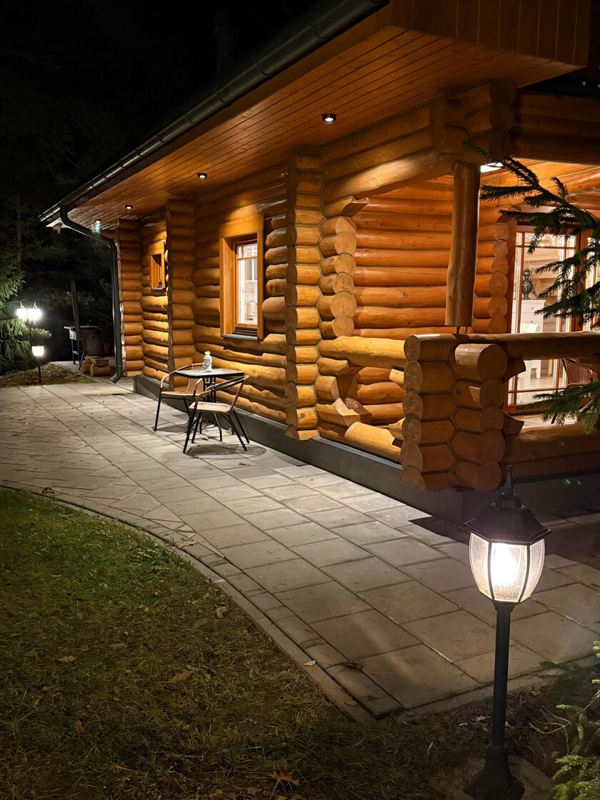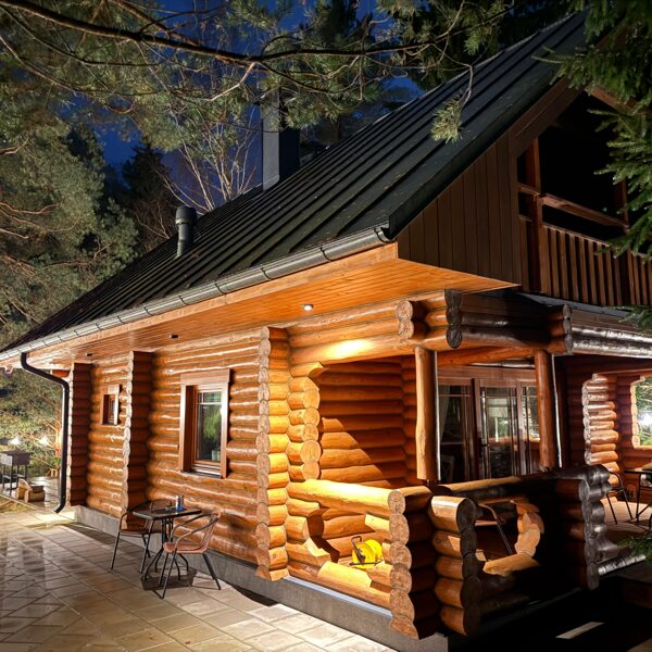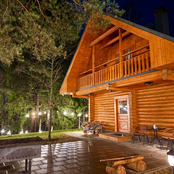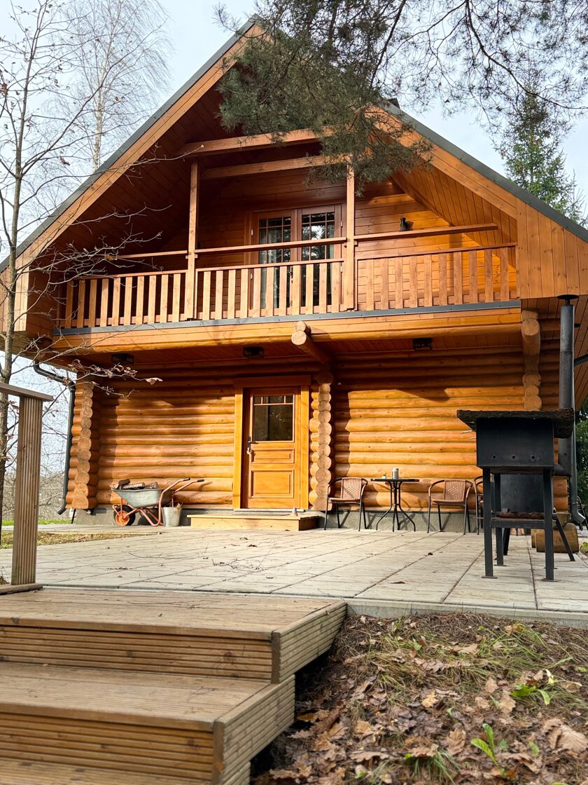 Tā ir neliela, boutique stila guļbaļķu mājiņa, kas apvieno lauku šarmu ar mājīgu eleganci — vieta, kur laiks palēninās un katra detaļa elpo mieru.