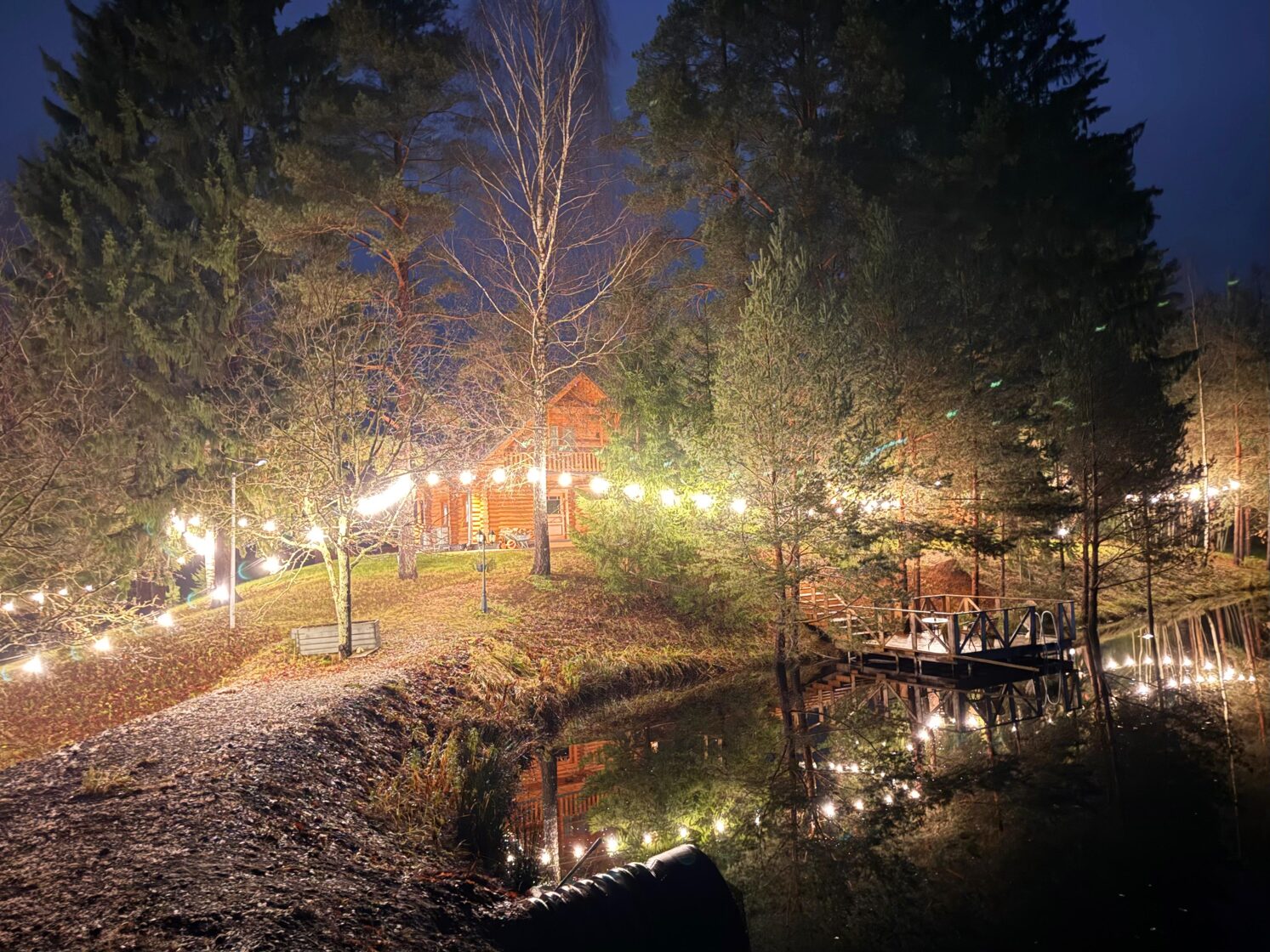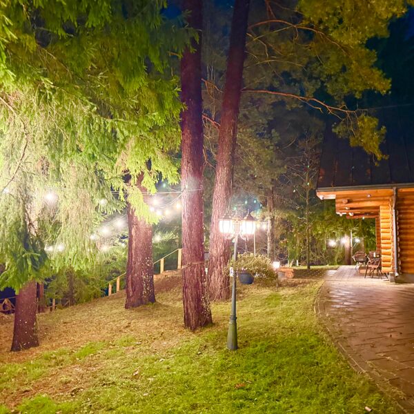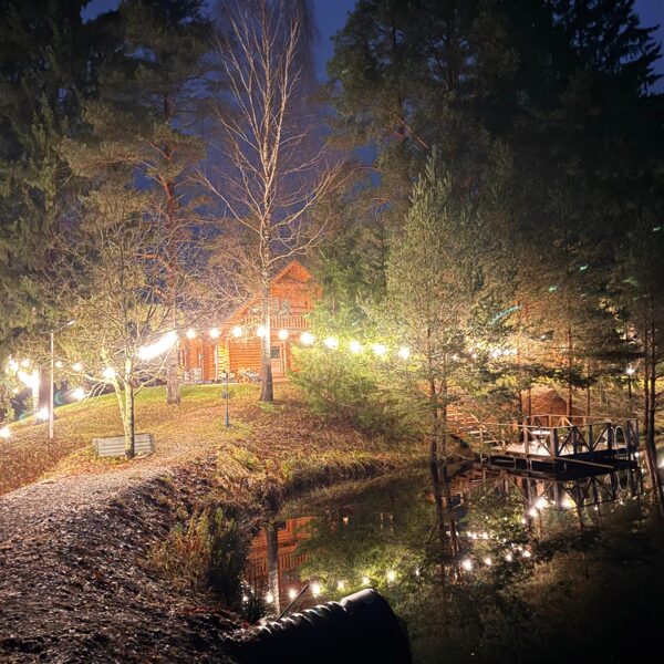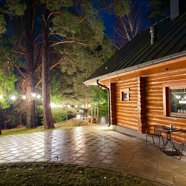 Āra teritorija aicina baudīt brīnišķīgus saulrietus, mierpilnu dabu un kopā būšanu, ieturot maltīti kādā no terasēm, atpūšoties pie grila vai ugunskura. Arī diennakts tumšajā laikā pie mums viss ir gaišs, radot patīkamu, drošu un mājīgu atmosfēru.